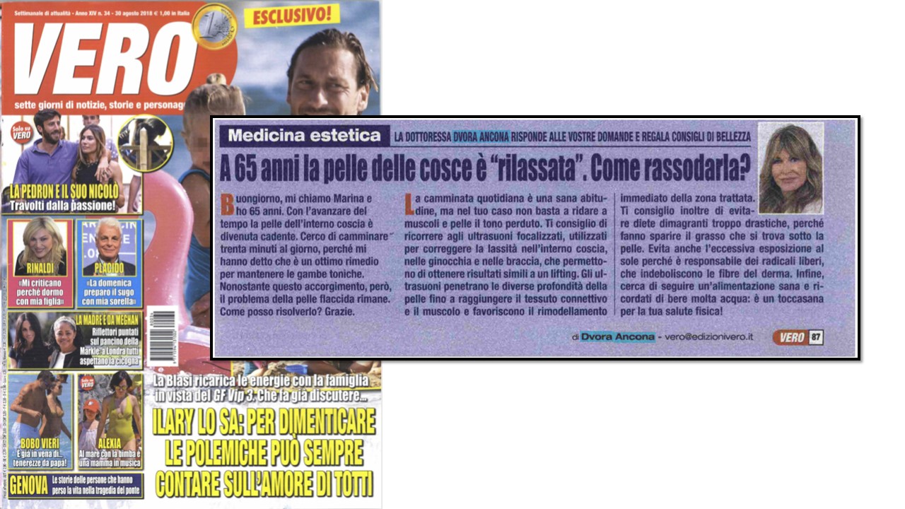 Notizie, informazioni, curiosità dalla stampa italiana, periodici, settimanali per rimanere aggiornati sui Trattamenti proposti dalla Dott. Dvora Ancona e sulle Novità del mondo della Medicina e Chirurgia Estetica .